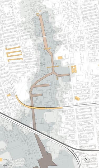 The Gowanus Industrial Algae Park proposes to maintain the impervious embankments in the areas with the most polluted soils, but to reestablish wetlands where feasible. The floodplain would host a variety of wetlands, algae farms and parks to mitigate the effects of flooding and purify the water, reinventing the industrial character of the area.